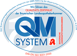 Gesundheit ist Vertrauenssache. Unsere Produkte und Serviceleistungen unterziehen wir daher laufend strengen internen Kontrollen. Den hohen Standard unseres Qualitätsmanagements bestätigt auch die Bayerische Apothekerkammer mit ihrem Prüfzertifikat gemäß DIN ISO 9001: 2008